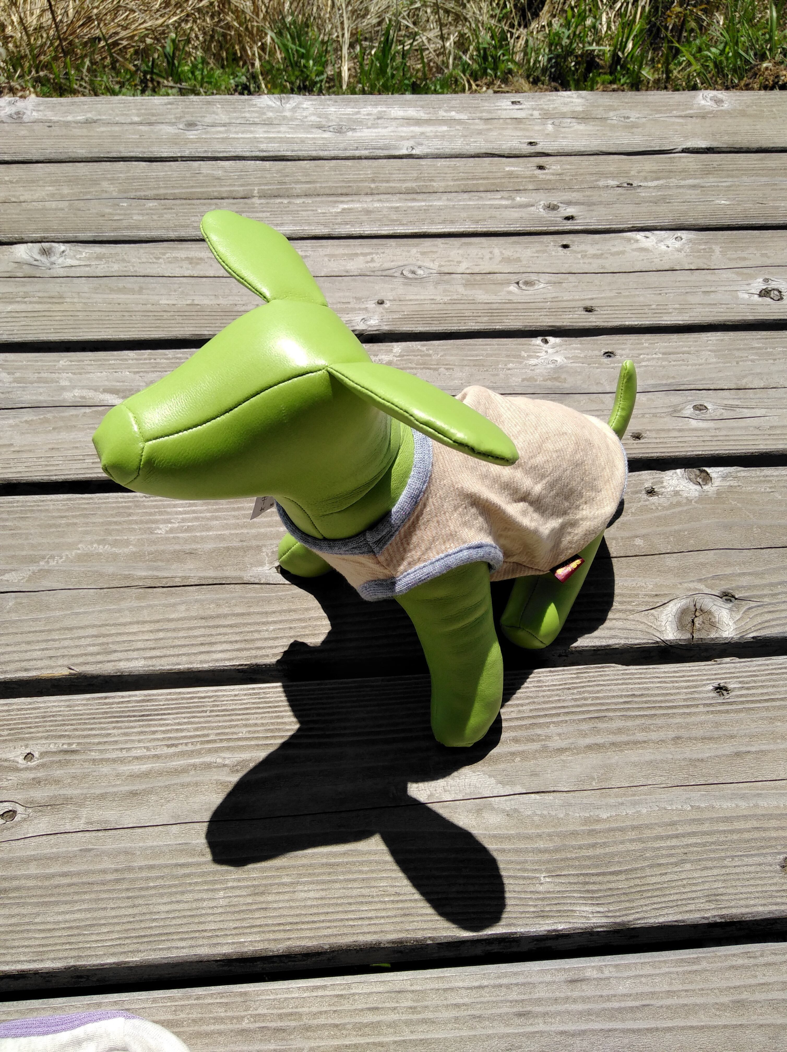 サイズは胴長ワンコ用、胴回り32㎝、着丈22.5㎝、首回り20.5㎝の3Sサイズです。